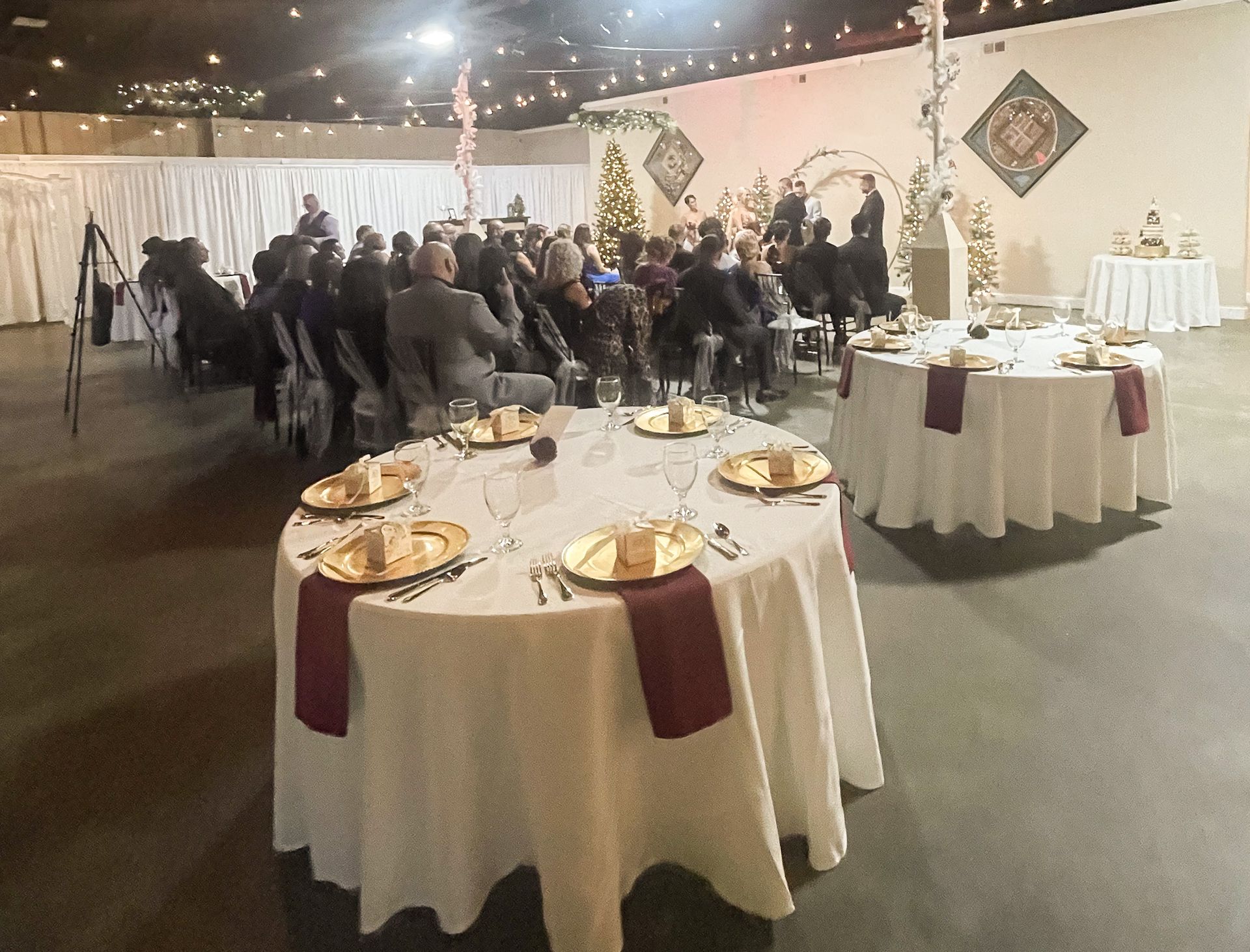 Host your next wedding, party, or business gathering at The Vine, our 4,500 square foot reception hall in Fayetteville, NC. The Vine has everything you’re looking for and includes 12 hours of access, round or rectangle tables, mahogany chiavari chairs, tables linens, and linen napkins. Our maximum capacity is 125 guests.